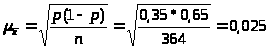 В качестве способа оценки дисперсии воспользуемся результатами прошлых исследований, проведенных в аналогичных целях. Для этого учтем, что наибольшая доля рынка принадлежит оператору сотовой связи МТС - 35%, следовательно, при подставлении в формулу для расчета дисперсии:
