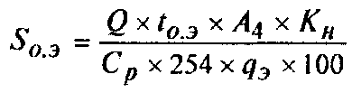 S>оэ>=20*1,5*80*1,2/500*254*0,5*100=2880/6350000=453,54 м2
