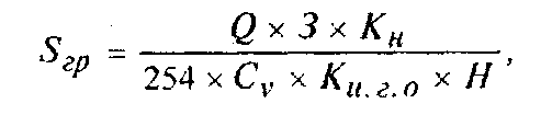 S>гр>=20*25*1,2/254*350*0,7983*1,2=600/85162,644=7045,34м2