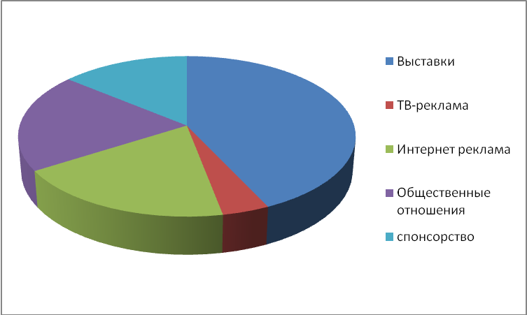 Проследить долю каждого из вида рекламной деятельности, использующегося в ООО ТД "БВК" можно на диаграмме: