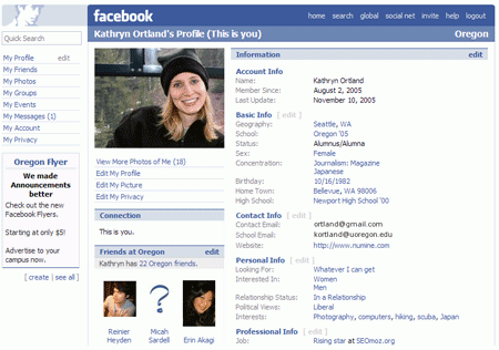 Социальная сеть Facebook является одной из наиболее популярных мировых сайтов для общения. Фактически, Facebook это брат-близнец «Вконтакте», только он на два года старше нашего отечественного представителя. Проект создан Марком Цукербергом в 2004 году. Благодаря этому проекту Марк стал самым молодым миллиардером в истории в свои 23 года. По последним данным Facebook является наибольшей социальной сетью и насчитывает 400 миллионов пользователей по всему миру. Для сравнения отмечу, что в контакте зарегистрировано около 80 миллионов пользователей (точную цифру назвать сложно, так как она значительно меняется каждый день и уже через пару недель может быть зарегистрировано 90 или 100 миллионов), но важно отметить, что неизвестно, сколько из них реальных пользователей, а не запасных страничек, страничек домашних животных и поддельных страничек знаменитостей – что очень популярно в России, и очень возможно, что число ненастоящих страниц составляет не меньше половины общего числа зарегистрированных пользователей. В этом плане Facebook сильнее: на этом сайте не распространены такие явления, как регистрация «левых» страничек, а для знаменитостей существует специальные Фан-страницы. Таким образом, Facebook избавлен от этой страшной напасти, которая является проблемой для российского аналога и мешает полностью соответствовать заданной концепции использования реальных имен и фотографий.