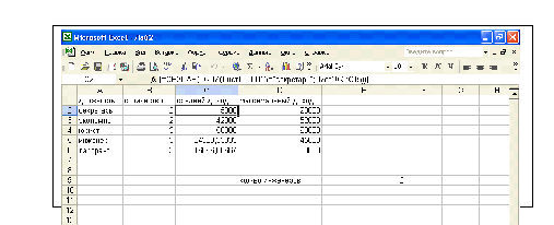 – в меню Окно выбрать команду Разделить. В этом случае электронная таблица расщепляется на четыре панели относительно выделенной ячейки (см. рис. 2). Горизонтальная разделительная линия устанавливается на верхней границе строки выделенной ячейки, а вертикальная – на левой границе столбца выделенной ячейки.