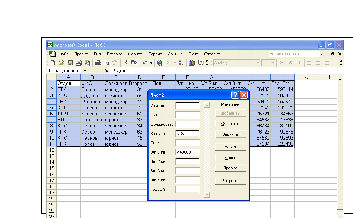 Форма – это окно диалога, предназначенное для управления списком. Excel создает форму автоматически, анализируя структуру списка. Чтобы получить форму, надо выделить список как диапазон и выбрать в меню Данные команду Форма (см. рис. 7). В окне формы отображается только одна запись. С помощью кнопки Далее можно поочередно просмотреть все записи списка. С помощью формы можно редактировать все поля списка, за исключением вычисляемых и защищенных полей. При создании формы данных Excel начинает с имен полей и добавляет текстовое поле для каждого значения, доступного для редактирования.