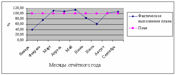 11. В целом за 9 месяцев 2008 года выполнение плана оптового товарооборота ООО «Торговый Двор «Аникс» было довольно равномерным. Структурные же подразделения ООО «Торговый Двор «Аникс» неравномерно выполняли план, причём из четырёх структурных подразделений три (т.е. 75%) не справились с плановым, что свидетельствует о недостатках в их торговой деятельности (потери товарооборота составляют 5134907 тыс.руб.) и, соответственно, резервах роста оптовой продажи товаров.