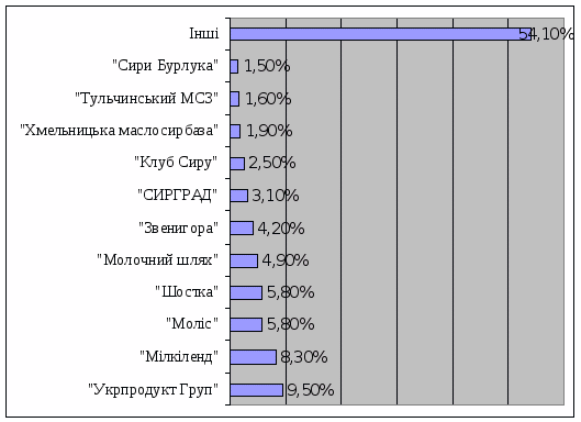 В загальному об'ємі реалізації сирів торгова мережа забезпечує не менш 85%, заклади громадського харчування — від 10 до 15%. В даний час характерною є загальна тенденція дорожчання молока і продуктів його переробки, у тому числі і сирів, проте для всіх варіантів розвитку сирного ринку характерним було зростання споживання в 2005-2006 роках, пов'язаний в першу чергу з підвищенням купівельної спроможності населення (рис.1.1). Спостерігалося уповільнення темпів зростання ринку, починаючи з 2007 року. В цьому періоді ключову роль гратимуть наступні чинники: