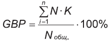 где GBP – суммарный рейтинг, Nобщ. – общая численность аудитории, на которую влияет источник информации или распространяется трансляция рекламного сообщения, чел.
