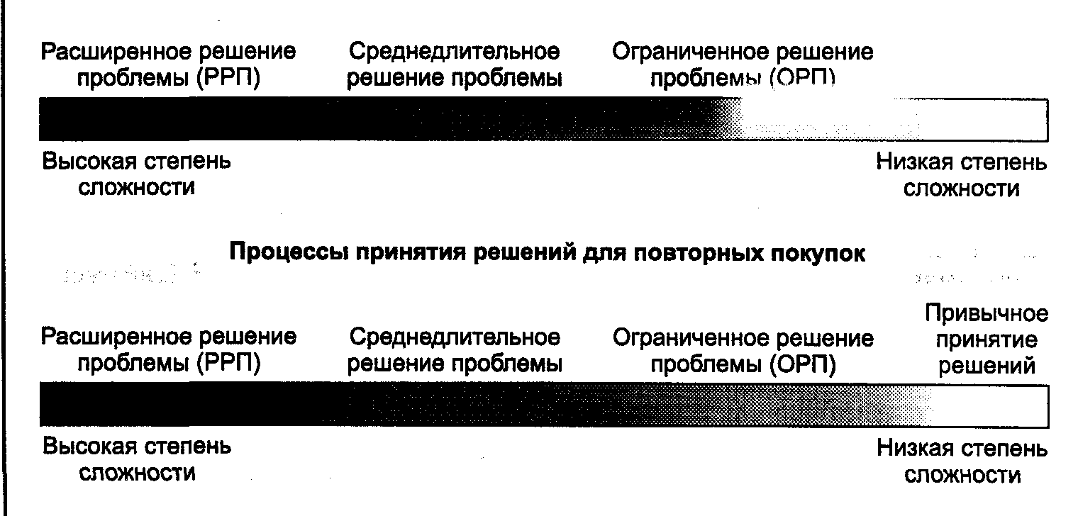 РРП и ОРП - это крайние точки континуума процессов решения, однако между ними располагается широкий круг решений. К примеру, супружеская пара решает, какой фильм посмотреть в кинотеатре или на видео. Обычно требуется минимальный объем информации, для получения которой надо просто заглянуть в газету.