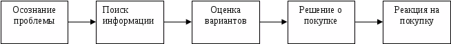 На рис. 1. представлено пять этапов, через которые проходит потребитель: осознание проблемы, поиск информации, оценка вариантов, решение о покупке, реакция на покупку.