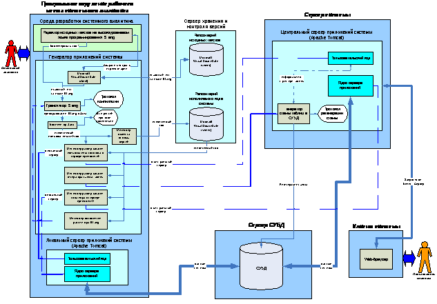 Архитектура КИС на платформе R7 является многоуровневой, что позволяет обеспечить разделение пользовательских сервисов, прикладных сервисов и сервисов данных. Отличием и преимуществом созданной архитектуры является достаточно четкое разделение архитектуры на R7-платформу и R7-бизнес-приложения.