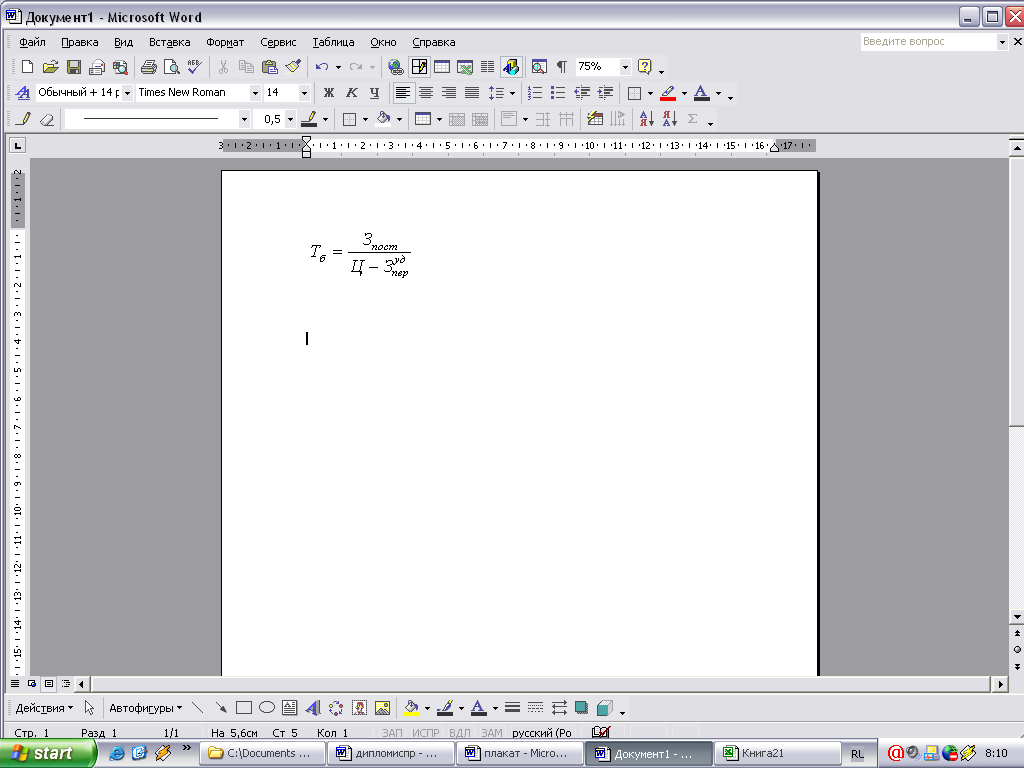 В качестве основного показателя эффективности бизнес-плана принято рассматривать показатель точки безубыточности.