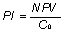 Индекс прибыльности (profitability index, PI) показывает относительную прибыльность проекта, или дисконтированную стоимость денежных поступлений от проекта в расчете на единицу вложений. Он рассчитывается путем деления чистых приведенных поступлений от проекта на стоимость первоначальных вложений: