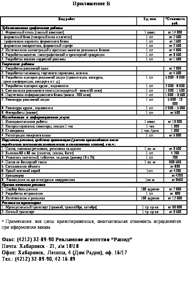 Недостатком коммуникативной политики ООО « Рапид» является, на наш взгляд, не использование рекламы на радио и телевидении. В дальнейшем необходимо размещать рекламу о РА «Рапид» на местных каналах телевидения (телеканал ДТВ-viasat, 5-й канал ДВТРК, DTV, DTV-День), а так же на радиостанции (Радио ДВТРК, Хабаровск FM), ведь эти СМИ стали выпускать более профессиональный продукт, пользующийся популярностью у зрителей, слушателей, читателей, и, соответственно, у рекламодателей.