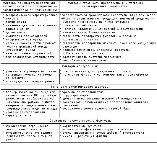 Факторы привлекательности Интернет-рынка для предприятия и готовности предприятия к интеграции