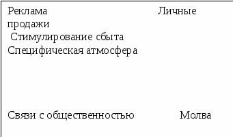 - основные элементы: персональные продажи и реклама;