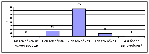 Таблица №2 – Количество необходимых автомобилей в семье, %