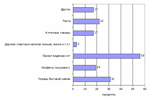 Другое – 17 % (в категории «другое» наиболее часто встречались пожелания о расширении в магазине ассортимента приправ, соусов, растительных масел, плавленых сырков и телефонных карточек) (см. рис. 3).