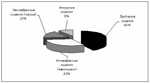 На основании структуры ассортимента макаронных изделий, реализуемых в магазине №12 ООО «Лимак-Трейд» в 2007 г. видно, что больший удельный вес занимают трубчатые макаронные изделия – 41,99% от всего ассортимента.