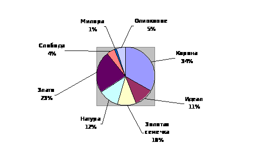 Лидером в предпочтениях опрошенных стала этикетка масла «Злато» (ее средний балл 8,59), далее этикетка масла «Корона изобилия» (7,9). Цветовые предпочтения выбора этикеток - зеленый цвет (мотивировали тем, что продукт растительного происхождения, а растения - зеленые). Этикетки продукции «Сигмы» имеют два цветовых направления: зеленый и синий. Данные результаты опроса следует учесть в будущем.