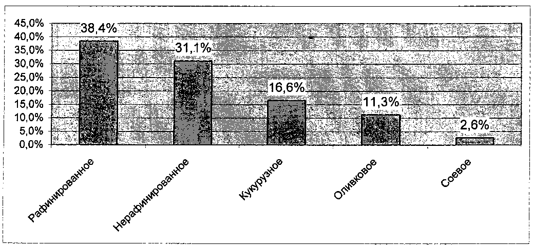 Среди покупателей магазина «Дикси» третья часть предпочитает масло «Корона» (33%), далее идут «Злато» (23%), «Идеал» (11%), «Натура» (10%). Большая часть опрошенных предпочитает делать покупки в крупных торговых сетях, супермаркетах. По видам масла на первом месте рафинированное (38%), далее идет нерафинированное (11%), кукурузное (17%), оливковое (11%), соевое масло пользуется небольшим спросом. Предпочтения в выборе видов масел посетителями магазина соответствуют объемам их производства. Можно сказать, что масло «Корона» пользуется хорошим спросом в таких торговых точках, и здесь возможно увеличение объемов поставок.