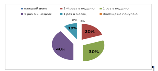 Для анализа причины покупки творога, я первоначально выяснила, с какой частотой респонденты покупают творог.