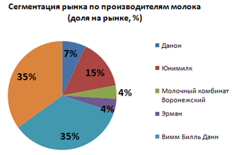 Сегментация рынка по производителям молочной продукции |