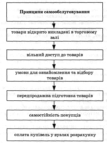 Рис. 7. Загальні принципи організації продажу товарів методом самообслуговування