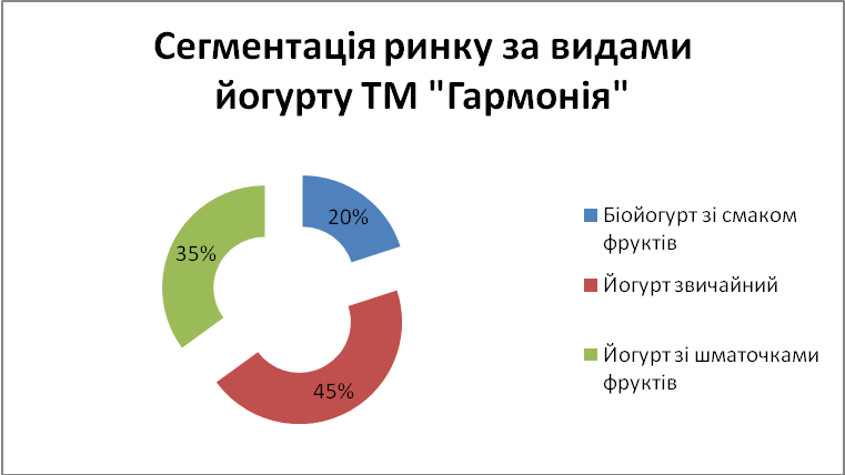 Цільові ринки. На основі Анкети (додаток 1) проведемо сегментацію йогурту ТМ «Гармонія» за їх різновидами: біойогурт зі смаком фруктів; йогурт звичайний; йогурт зі шматочками фруктів, орієнтуючись на споживачів міста Суми.