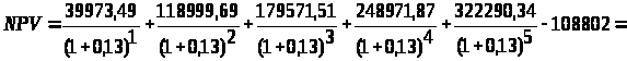 Определим чистую текущую стоимость нашего инвестиционного проекта: