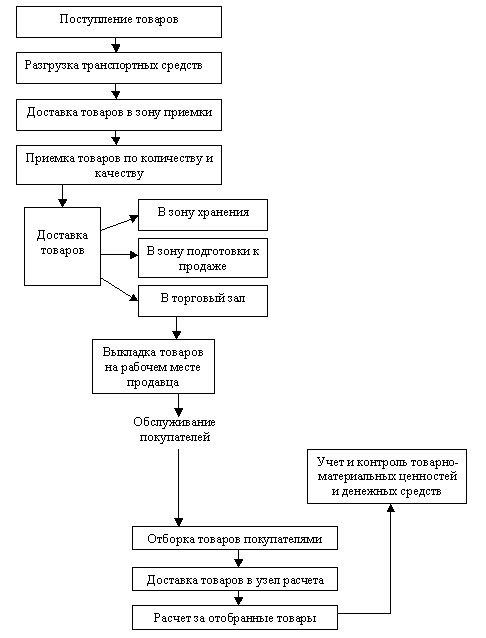 Таким образом, торгово-технологический процесс в магазине можно разделить на три основные части: