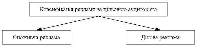 Автори в сучасній економічній літературі велику увагу приділяють класифікації рекламі. Практично завжди реклама спрямована на певну частину населення. Коли людина бачить рекламу, яка її не приваблює, це означає, що вона (ця людина) не належить до тієї групи, якій ця реклама адресована. Телевізійний ролик, що рекомендує новий пральний порошок, буде малопривабливим для підлітка. Для молодої матері сімейства з трьома маленькими дітьми буде малоцікавою реклама пасти для штучних зубів. Цільова аудиторія звичайно визначається як група людей, до якої спрямоване рекламне послання. Доцільно передавати це звернення по можливості більш точно, щоб уникнути розпилення інформації, оскільки це спричиняє неефективність і зайві витрати.