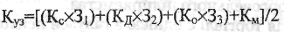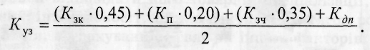 Зазначені показники неоднаковою мірою впливають на загальний рівень якості торговельного обслуговування. Найбільшу вагу має оцінка якості торговельного обслуговування самими покупцями, тому величина К>д>>п> дорівнюватиме одиниці. Сума трьох інших показників теж становитиме одиницю, а більш вагомим з них є коефіцієнт завершеності купівлі (0,45), оскільки покупців перш за все цікавить наявність необхідних товарів і можливість задовольнити свій попит. Тому при визначенні узагальнюючого показника враховують важливість кожного з чотирьох вищезазначених показників. Отже, узагальнюючий коефіцієнт рівня якості обслуговування покупців у магазині (К>уз> ) розраховується за формулою: