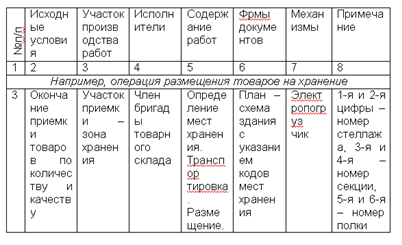 Технологические карты могут составляться для каждого товарного склада. Помимо технологической карты рекомендуется ежедневно составлять суточный график работы склада. Существенным резервом повышения эффективности функционирования материалопроводящих систем является переход от традиционно разрозненного решения задач складирования и транспортировки к проектированию единых транспортно-складских процессов.