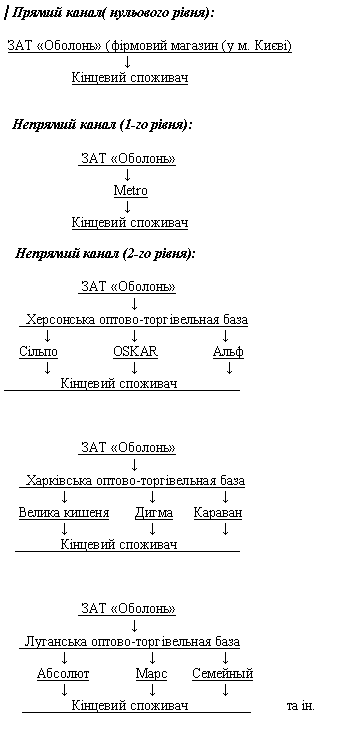7. ЗАТ «Оболонь» використовує змішані канали розподілу продукції, що об'єднують риси прямих (продаж товару кінцевому споживачеві підприємством-виробником без використання будь-яких посередників) та непрямих (переміщення товарів і послуг спочатку від виробника до учасника-посередника, а потім від нього - до споживача) каналів. І в свою чергу гарантують більший набір постачальницько-збутових послуг. Але все ж переважає канал розподілу 2-го рівня.