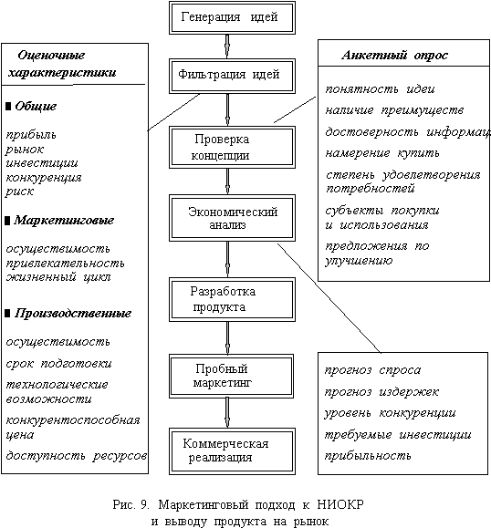 ♦ определение с помощью исследований маркетинга и перспектив сбытовой деятельности основных направлений проведения научно-исследовательских и опытно-конструкторских работ (НИОКР), способных быстро дать желаемые результаты;