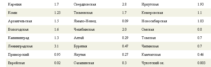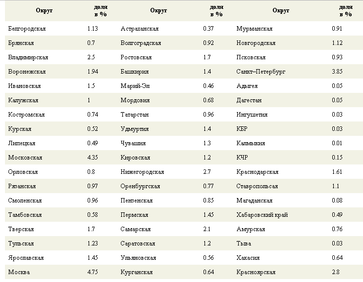 Для начала хотелось бы привести некоторые цифры, характеризующие распределение винного рынка по территории нашей страны (таблица 5)
