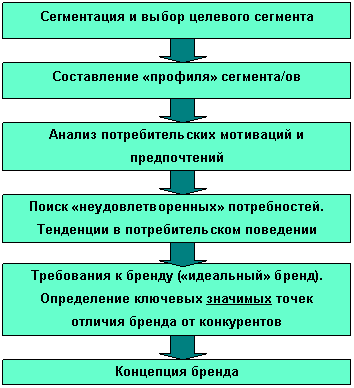 Итак, для разработки концепции бренда необходимо пройти ряд этапов, которые можно представить следующим образом (рис.2):