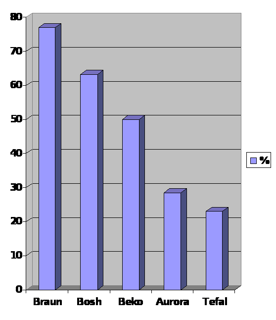 Найбільше зростання у сегменті виробника Braun - продажі зросли на 77%, до 333 тис. грн за квартал, зростання за півріччя склав 69,2% - до 634 тис. грн. "Цей результат став можливим завдяки поєднанню переваг покупців і помірною середньої ціни на виріб.", - відзначають аналітики GFK Ukraine.