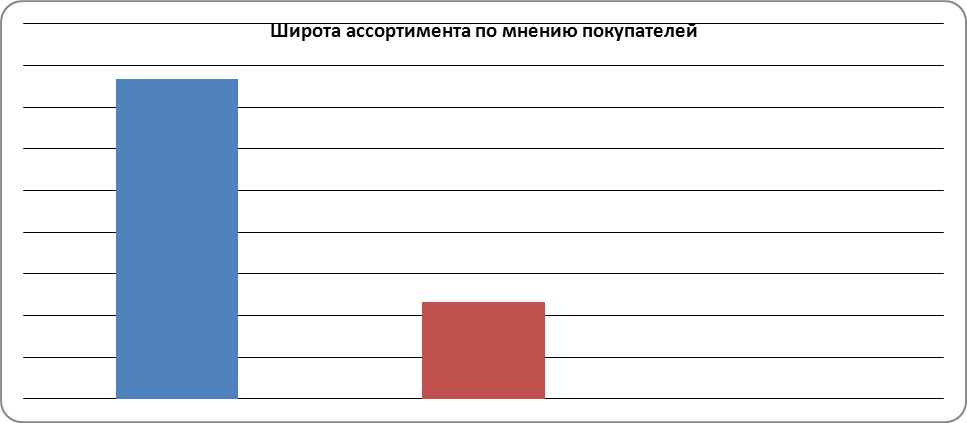 Так как покупатели приобретают продукты питания для детей нескольких видов сразу, я выяснила, насколько ассортимент для покупателей широк. Результат показал, что 76,7% респондентов считают, что ассортимент достаточно большой. 23,3% респондентов считают, что ассортимент детского питания не настолько велик как хотелось бы. Это так же влияет, где покупают детское питание, так как не во всех торговых предприятиях имеется полный ассортимент. Но ни у кого не сложилась мнения, что ассортимент исследуемого товара низкий.