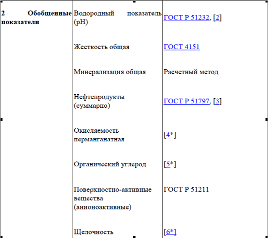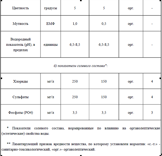 Безвредность воды по химическому составу определяется ее соответствием нормативам (по более чем 60 параметрам). Вот некоторые из них: