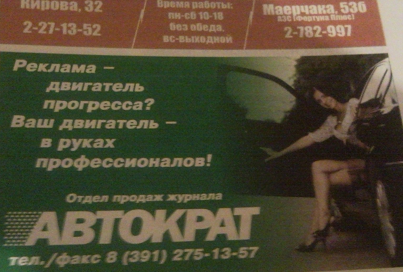 Эротика в красноярской рекламе часто неуместна и иногда даже отталкивает.
