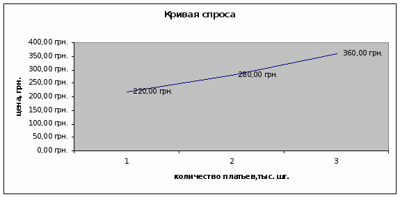Итак, график показывает, что объем продаж, обеспечивающий безубыточность при цене 384грн. за платье составляет около 382 тыс. изделий, поскольку при этом объеме величина валового дохода равна валовым издержкам.