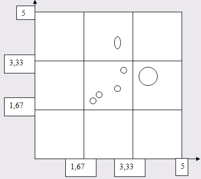 Перейдемо до результатів матриці "Дженерал Електрік – МакКінзі". Нагадаємо, що дана матриця як і матриця БКГ носить тільки рекомендаційний характер.