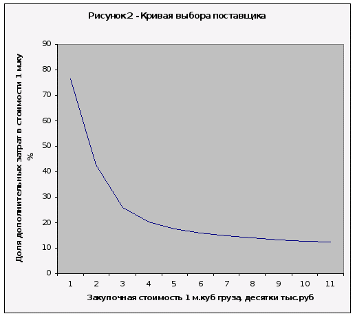 На основании полученных значений дополнительных затрат строится кривая выбора поставщика.