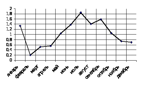 Используя данные таблицы 4, построим график сезонности объёма продаж минеральных вод