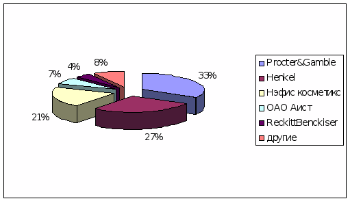 где: 1 – Procter&Gamble; 2 – Henkel; 3 – Нэфис косметикс; 4 – ЗАО «Аист»; 5 – ReckittBenckiser; 6 – Невская косметика; 7 - ОАО « Сода».