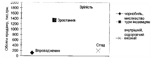 У структурі продуктового ряду досліджуваного підприємства присутні і продукти, темпи продажу яких характерні для стадії спаду (зарубіжні тури), а також продукти у стадії розробки та впровадження - аматорські тури для мисливців та екскурсії до Чорнобилю.