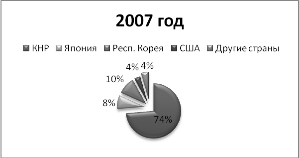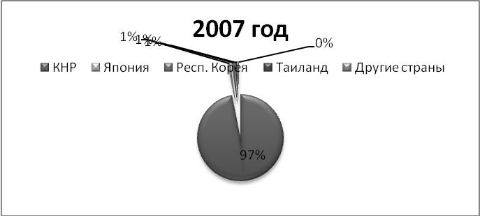 Рисунок 3. - Сравнительная диаграмма показателей въезда иностранных туристов в Приморский край в 2007 г. (с.27)