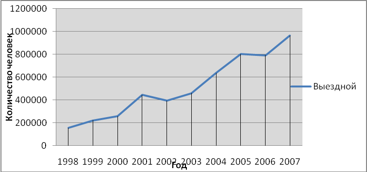 Рисунок 2. - Показатели выезда российских туристов за пределы Приморского края (с.26)