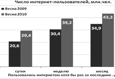 Рис. 1. Количество пользователей интернета за 2009 – 2010 года.