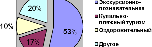 Анализируя ситуацию на туристском рынке, можно сделать вывод, что туристы предпочитают краткосрочные поездки, продолжительность которых 7-15дней (58% туристов). 24% туристов совершают поездки продолжительностью 15-30 дней. Но так же есть и такой контингент туристов, которые выбирают длительные поездки, и процент этих туристов не мал – 18% [5].